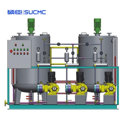 1、由溶藥箱、熟化箱、儲液箱組成的三箱裝置:帶有加固件和支架用于與其他裝置相連,由優質工程塑料制成,也可選用不銹鋼材質。